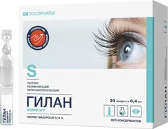 «ГИЛАН КОМФОРТ» присутствует в Базе Данных в 2 формах выпуска: (капли глазные юнидозы без консервантов, капли глазные флакон OSD в саше) и в 3 различных расфасовках, а именно: капли глазные юнидозы без консервантов 0,18% 0,4мл х30, капли глазные юнидозы без консервантов 0,18% 0,4мл х10, капли глазные флакон OSD в саше 0,18% 10мл.