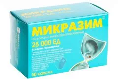 «МИКРАЗИМ» присутствует в Базе Данных в 7 различных расфасовках, а именно: капс 10000Ед х20, капс 10000Ед х40, капс 25000Ед х20, капс 25000Ед х40, капс 10000Ед х100, капс 25000Ед х100, капс 40000Ед х50.