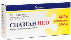 СПАЗГАН НЕО имеется в наличии у 36 поставщиков Стоимость СПАЗГАН НЕО составляет от 183.22 до 361.74 руб Вас могут заинтересовать аналоги СПАЗГАН НЕО по МНН ИБУПРОФЕН + ПИТОФЕНОН + ФЕНПИВЕРИНИЯ БРОМИД: НОВИГАН