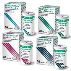 «ТРИПЛИКСАМ» присутствует в Базе Данных в 3 различных расфасовках, а именно: таб п/о 5мг+2,5мг+10мг х30, таб п/о 5мг+1,25мг+5мг х30, таб п/о 10мг+2,5мг+10мг х30.