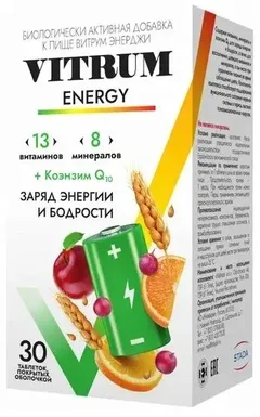 «ВИТРУМ ЭНЕРДЖИ» присутствует в Базе Данных в 2 формах выпуска: (таб шип., таб п/о) и в 2 различных расфасовках, а именно: таб шип. 3,8г х20, таб п/о 1400мг х30.